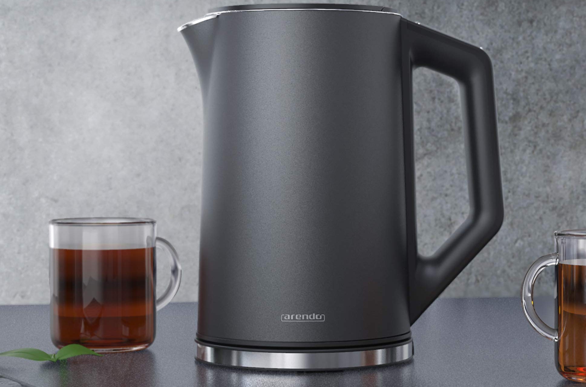 Arendo - Edelstahl Wasserkocher mit Temperatureinstellung 40-100 Grad in 5er Schritten - Doppelwand Design - Modell ELEGANT - 1,5 Liter - 2200 W - Teekocher mit Temperaturanzeige - GS - Cool Grey